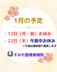 1月12日(月)は祝日のため終日お休み、